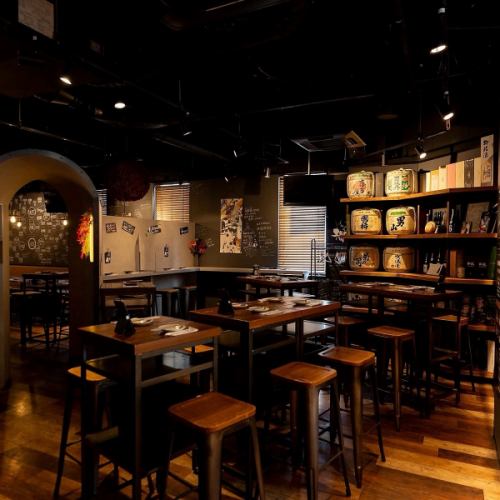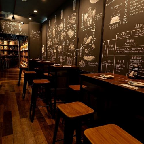 ハイテーブルのお席は圧巻の壁の酒をみながらお好きな日本酒をお楽しみ頂けます。ご注文場所のカウンターに近いため、飲み放題の方はこちらのお席がおすすめです。