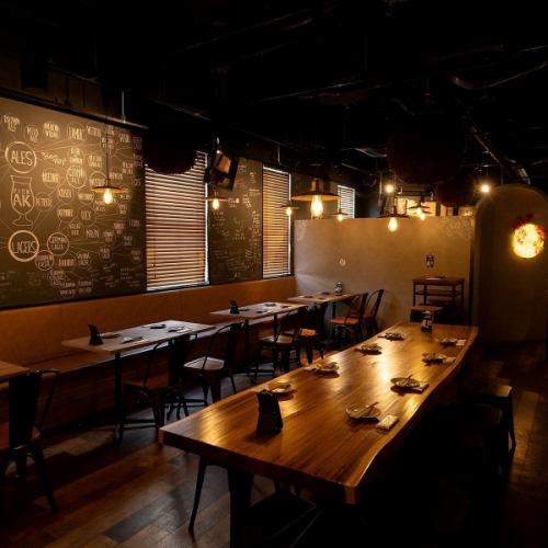 横浜西口駅徒歩1分。木の温もりと少し落ち着いた照明が、ちょっぴり大人なカジュアルなバーの雰囲気。